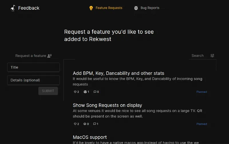 We’re excited to announce a brand-new way for our users to shape the future of Rekwest! You can now submit feature requests and bug reports directly from within the app. Making it easier than ever to share your ideas and feedback.
